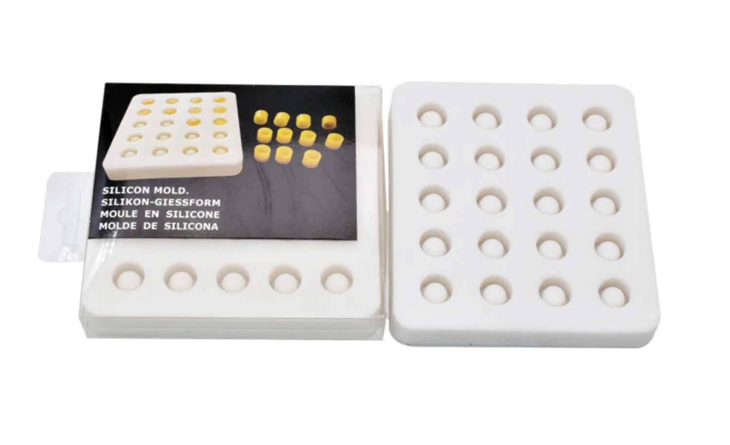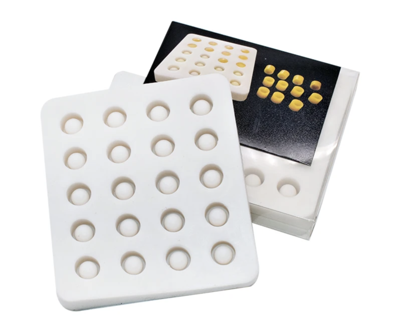 Mit dieser hochwertigen Silikon-Kautschuk-Form können ganz einfach 20 Weiselbecher aus Bienenwachs hergestellt werden. Die fertigen Näpfchen lassen sich nach dem Abkühlen mühelos entnehmen und sind äußerst stabil.