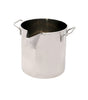 aus Edelstahl mit einer ausgeprägten Ausgießtülle und zwei seitlichen Griffen